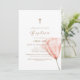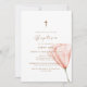 Simple Script Boho Floral Gold Cross Baptism Invitation