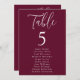 Simple Script Burgundy Table Number Seating Chart