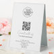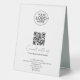 This customisable table tent sign is a practical and polished way to display your business details and pricing right where customers need them most. Featuring a clean, minimalist layout, one side of the tent includes your logo, business name, QR code, and full contact information—perfect for encouraging digital engagement and building your online presence. The opposite side is a formatted price list, making it easy for clients to view your services at a glance.