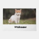 Simple script cute little cat welcome Doormat, cute little cat photo doormats, personalised it by adding your favourite pet and message
