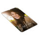 A classic and elegant script graduate in white sits at the bottom of a vertical photo. The custom text includes room for the graduate's name and also school and year details. This magnetic card is the perfect way to announce your graduate's accomplishment to friends and family!