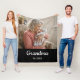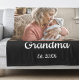 Simple Script Grandma Est.Photo Year Black Fleece Blanket