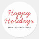 Simple Script Happy Holidays Red Typography Classic Round Sticker