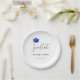 Simple and perfect graduation paper plates with a beautiful script font that says graduate. The design has a royal blue graduation cap. Personalise the text with the name of the graduate, high school or college and class. Illustrated and designed by Patricia Alvarez.