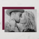 Modern wedding thank you card featuring your horizontal wedding photo with "Love & Thanks" displayed in a simple white script overlay. Personalise the photo thank you card with your name. The card reverses to a solid burgundy background with space for additional photos and text.