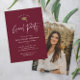 Simple Script Maroon Photo Graduation Party invitation with elegant gold foil cap and minimalist typography. Click the edit button to customise this design. Easily add a photo to the back.