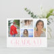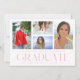 Simple Script Multi Photo Graduation Announcement Card features four of your favourite photos of your college or high school graduate on the front with the elegant modern pink calligraphy script "Graduate" overlay. Add an additional photo on the reverse. Simple, stylish and classy. Created by ©Evco Studio www.zazzle.com/store/evcostudio