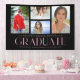 Simple Script Multi Photo Graduation Announcement Banner features four of your favourite photos of your college or high school graduate on the front with the elegant modern pink calligraphy script "Graduate" overlay. Perfect for a Graduation Party Simple, stylish and classy. Created by ©Evco Studio www.zazzle.com/store/evcostudio
