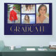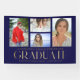 Simple Script Multi Photo Graduation Announcement Banner features four of your favourite photos of your college or high school graduate on the front with the elegant modern gold calligraphy script "Graduate" overlay. Perfect for a Graduation Party Simple, stylish and classy. Created by ©Evco Studio www.zazzle.com/store/evcostudio