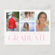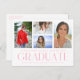 Simple Script Multi Photo Graduation Announcement Postcard features four of your favourite photos of your college or high school graduate on the front with the elegant modern pink calligraphy script "Graduate" overlay. Personalise with a message on the reverse. Simple, stylish and classy. Created by ©Evco Studio www.zazzle.com/store/evcostudio