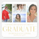 Simple Script Multi Photo Grad Graduation Party Stickers & Labels features four of your favourite photos of your college or high school graduate with the elegant modern gold calligraphy script "Graduate" overlay. Personalise with name, class of and school or college. Simple, stylish and classy. Created by ©Evco Studio www.zazzle.com/store/evcostudio