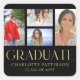 Simple Script Multi Photo Grad Graduation Party Stickers & Labels features four of your favourite photos of your college or high school graduate with the elegant modern gold calligraphy script "Graduate" overlay. Personalise with name, class of and school or college. Simple, stylish and classy. Created by ©Evco Studio www.zazzle.com/store/evcostudio