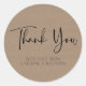 Simple Script Name Brown Kraft Paper Thank You Classic Round Sticker