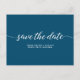 Customise this navy blue "Save the Date" wedding postcard. Announce your engagement, personalise the text with your upcoming wedding details. Congratulations!