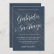 The wedding couple names are written in an elegant white script. The wedding details are written in a classic serif font. Very subtle rays of sunlight play across the front and back. There is a version with no rays of sunlight on front. If you prefer a more minimalist design, you can just delete the sunlight on the back. This wedding invitation is part of the Simple Script and Sunlight Collection.
