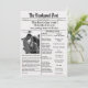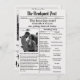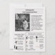 Modern script newspaper wedding save the date with three photo, photo of the groom and the bride when they were kids and when they are grown up.