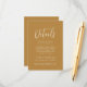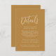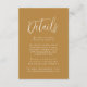 Modern wedding details cards featuring your wedding details displayed in white lettering with an ochre background. Add details such as hotel accommodations, welcome reception information, wedding website, etc. Designed to coordinate with our Simple Script wedding collection.