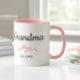 Simple Script Pink Girl Bow Grandma Est. (established) Year Mug. Script font design with a pretty pink bow. Switch out the date and switch "grandma" for how you call your grandmother. Add more years for more grandchildren. Contact designer for any customization questions.