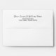 Elevate your wedding stationery with this elegant return address envelope featuring modern script names and a classic serif address layout. Printed in black on crisp white, this envelope offers a sophisticated touch to your save the dates, invitations, or thank you cards. Fully customisable with your address, this envelope ensures a polished and cohesive look for your wedding mail.