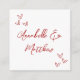The back includes the bride and groom's names in the same elegant handwritten script, along with a pair of small, hand-drawn hearts for a sweet and romantic touch that complements the bold red design.