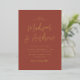 Elegant wedding invitations featuring your names displayed in a handwritten gold foil script with a rust background. Personalise the simple gold foil wedding invitations with your wedding details. Designed to coordinate with our Simple Script wedding collection.