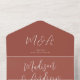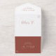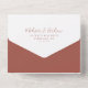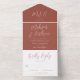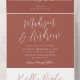 Modern wedding invitation featuring your monogram initials, names, and wedding details in a simple white script with a rust background. The rust all-in-one wedding invitation includes an RSVP postcard.