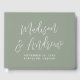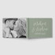 Add a personalised touch to your wedding ceremony with this Simple Script Sage Green guest book. The design features your names displayed in an elegant white calligraphy script with your wedding date and location shown below on a sage green background. Add your custom text to the spine of the sage green guest book. The back of the guest book features your horizontal engagement photo.