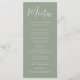 Simple wedding menu featuring "Menu" displayed in a white script with a sage green background. Personalise the sage green wedding menu by adding your names, wedding date, and menu information. Designed to coordinate with our Simple Script wedding collection.