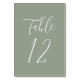 Elegant wedding table numbers featuring the table number displayed in a simple white script with a sage green background. The text and background colours can be changed to your wedding colours using the editing tools. To order these table cards, individually edit the card with the number and add it to your cart. Repeat for each number needed.