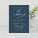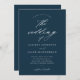 A simple and chic navy blue wedding invitation featuring elegant script calligraphy details and classic text. Click the edit button to customise this design.