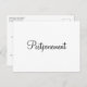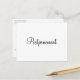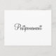 Modern black and white wedding postponement announcement postcard featuring a simple design with the title in script. The backside has your details and return address for easy mailing. A basic and plain design that still comes across as elegant. These minimalist announcement postcards are a great way to let guests know that your wedding has been postponed.