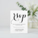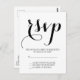 Simple black and white script wedding RSVP postcard.