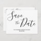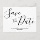 Simple wedding Save the Date postcards with changeable script black text (you can change text) printed on white background