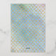 Simple Seashells in gold foil with calligraphy and classic fonts on simple front invitation. Reverses to sea colours of watercolors overlaid with mermaid fish scales in a faux golden effect.