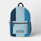 Simple Shades of Blue Vertical Stripes Monogram Printed Backpack