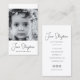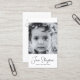 Modern and professional photography business cards featuring your photo with trendy minimalist signature script typography. Add your contact information to the back. Includes three social media icons and a field for your username.