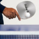 This silver ping pong paddle has text in a black script. The text can be edited or deleted. The faux (not foil) silver look is an artistic rendering.