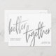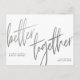 Minimalist save the date cards ready to be customised! This design features "better together" in faux silver hand-lettering with your names to the left and your date to the right. Feel free to contact me through the button below if you need assistance with the template or if you have customisation requests! View the collection link on this page or visit our store for more designs.
