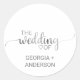These simple silver calligraphy wedding envelope seal stickers are perfect for an elegant wedding. The silver sparkle design features chic typography and a luxurious metallic heart. Personalise the label with the names of the bride and groom.