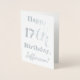 This simple and elegant silver foil birthday card design features a message like "Happy 17th Birthday, Jefferson!" on the front. The name ("Jefferson") can be changed to personalise the card. The inside features a customisable message like "May your 17th birthday be a happy and joyful one!". It could be given to somebody who is celebrating their seventeenth birthday. [~Z0000009]