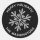 A black and silver faux glitter snowflake sticker. Personalise it with your family name.Designed for you by Blackberry Boulevard.