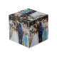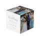 A Simple and Clean Silver Grey & White Design Photo Cube with clear wording giving details of the big day, plus 4 photos for you to add.