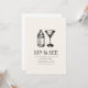 You're invited to a special Sip & See! This charming invitation template features a playful hand-drawn baby bottle sitting next to a martini cocktail, perfectly blending the celebration of a new arrival with an elegant gathering. Below, there's ample space to personalise with the party details, including the date, time, and location, as well as any special notes for guests. It's the perfect way to bring loved ones together to sip, see, and celebrate the newest addition in style!