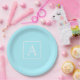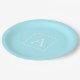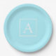 Simple Sky Blue Monogram Paper Plate