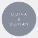 These simple slate blue grey wedding envelope seals are perfect for a modern wedding. The minimal boho design features classic white text on a slate blue grey background. Personalise the label with the names of the bride and groom.