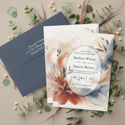 Terracotta Twilight and Navy Blooms Wedding SuiteDesigned by Lacey Moyer