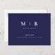 Simple Sleek Navy Monogram Wedding Save the Date Postcard