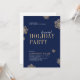 Celebrate the season with this modern annual holiday party invitations, feature minimal typography design and snowflake on colour editable navy blue background, and company's logo template on the back, Great invitations for annual holiday party, family or company Christmas party.
