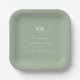 Simple Solid Colour Leaf Green Wedding Monogram Paper Plate