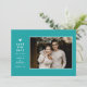 Simple Solid Colour Modern Heart Photo | Aqua Save The Date